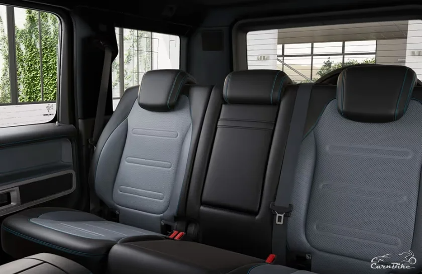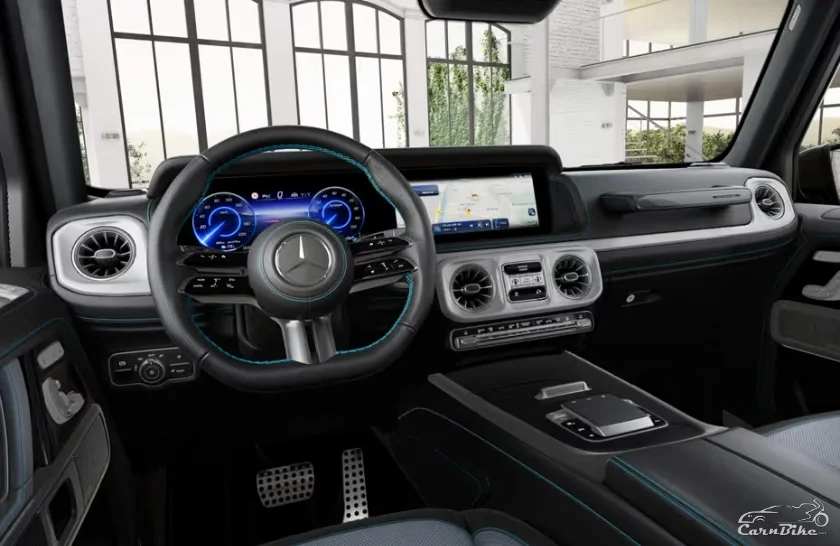 The G-Class boasts a luxurious interior with leather upholstery, a dual 12.3-inch digital display, and an advanced Burmester surround sound system. It also features a host of high-tech options, including the MBUX infotainment system, wireless charging, heated and ventilated seats, and various driver assistance systems such as lane-keeping assist and adaptive cruise control.